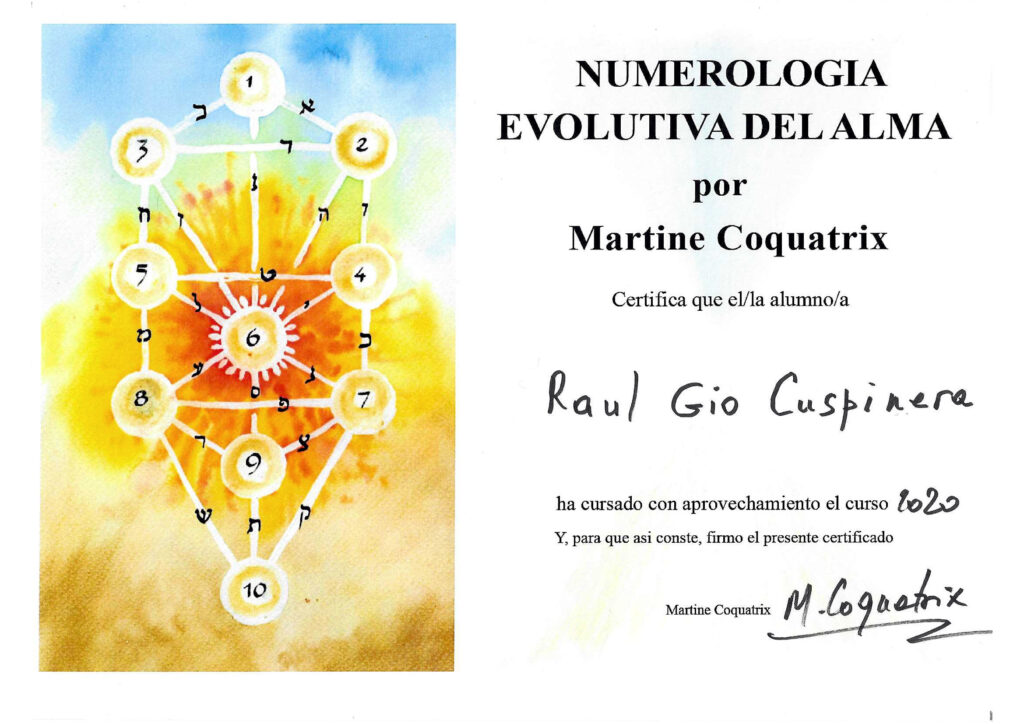 (Certificado. Numerología Evolutiva del Alma por Martine Coquatrix). Primera Generación en México.